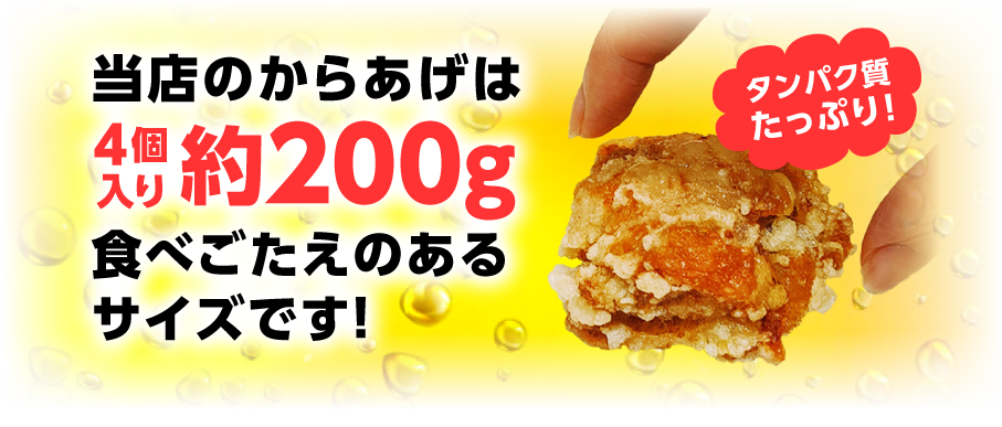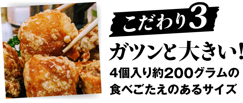 4個約200gのボリュームのあるサイズ感の唐揚げです。