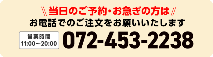 ご予約や大量のご注文についてなど、お気軽にお問い合わせください!